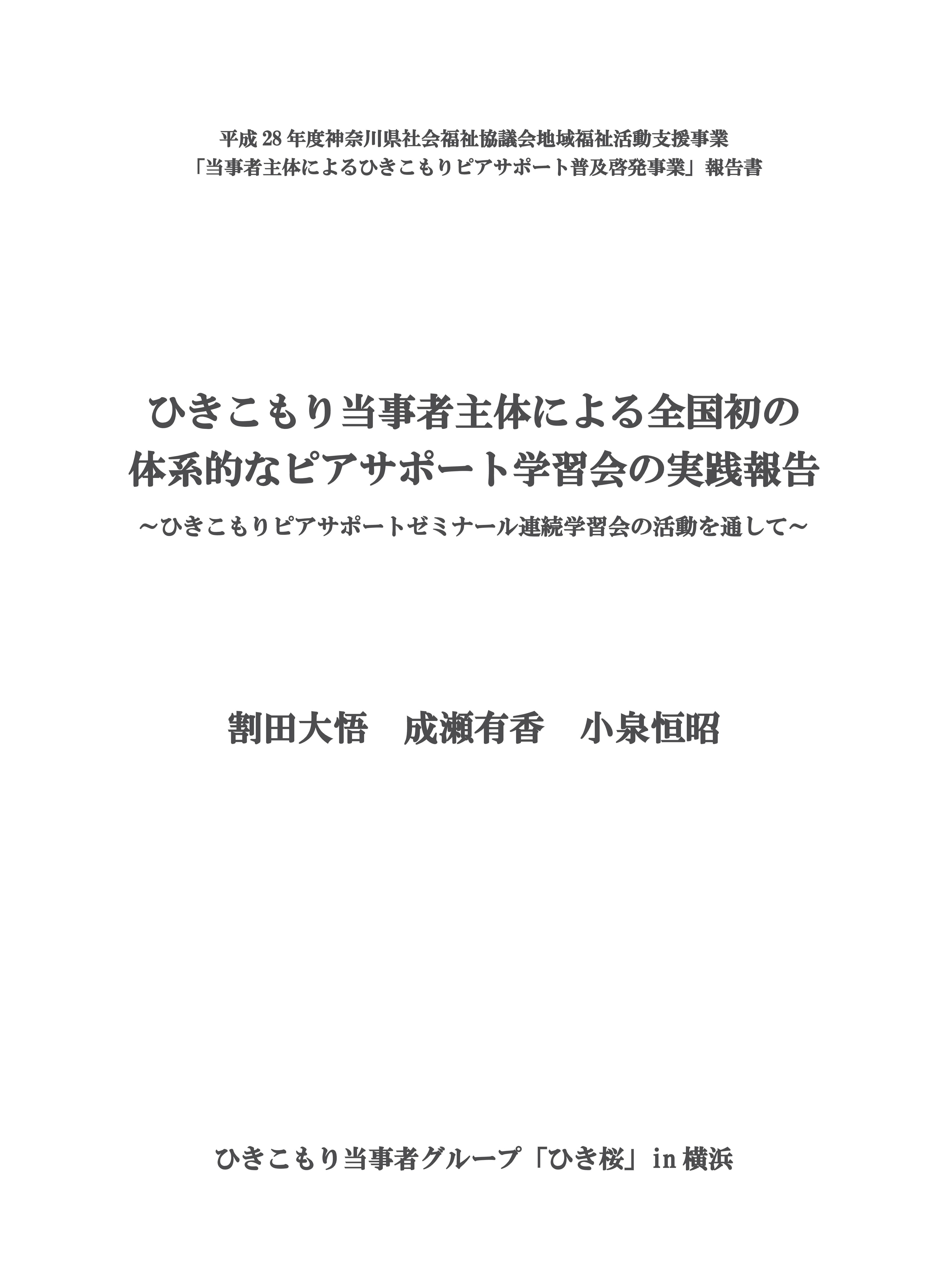 ②2016年度ピアサポート学習会実施報告書「ひきこもり当事者主体による全国初の体系的なピアサポート学習会の実践報告」(A4サイズ、23ページ構成)